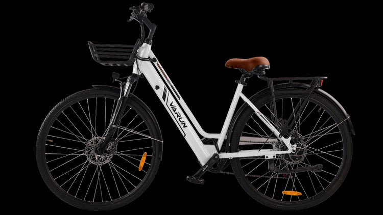 VARUN E-bike with Basket Front—28-Inch Urban Commuter (Advanced Model) with 36V 10Ah Battery & Torque Sensor