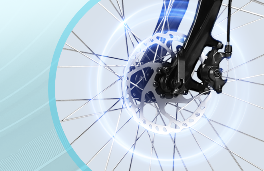 The dual disc brake system featured here delivers exceptional stopping power. Whether you're navigating steep descents or need to make sudden halts in urban riding, these disc brakes ensure precise and reliable braking performance.