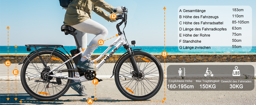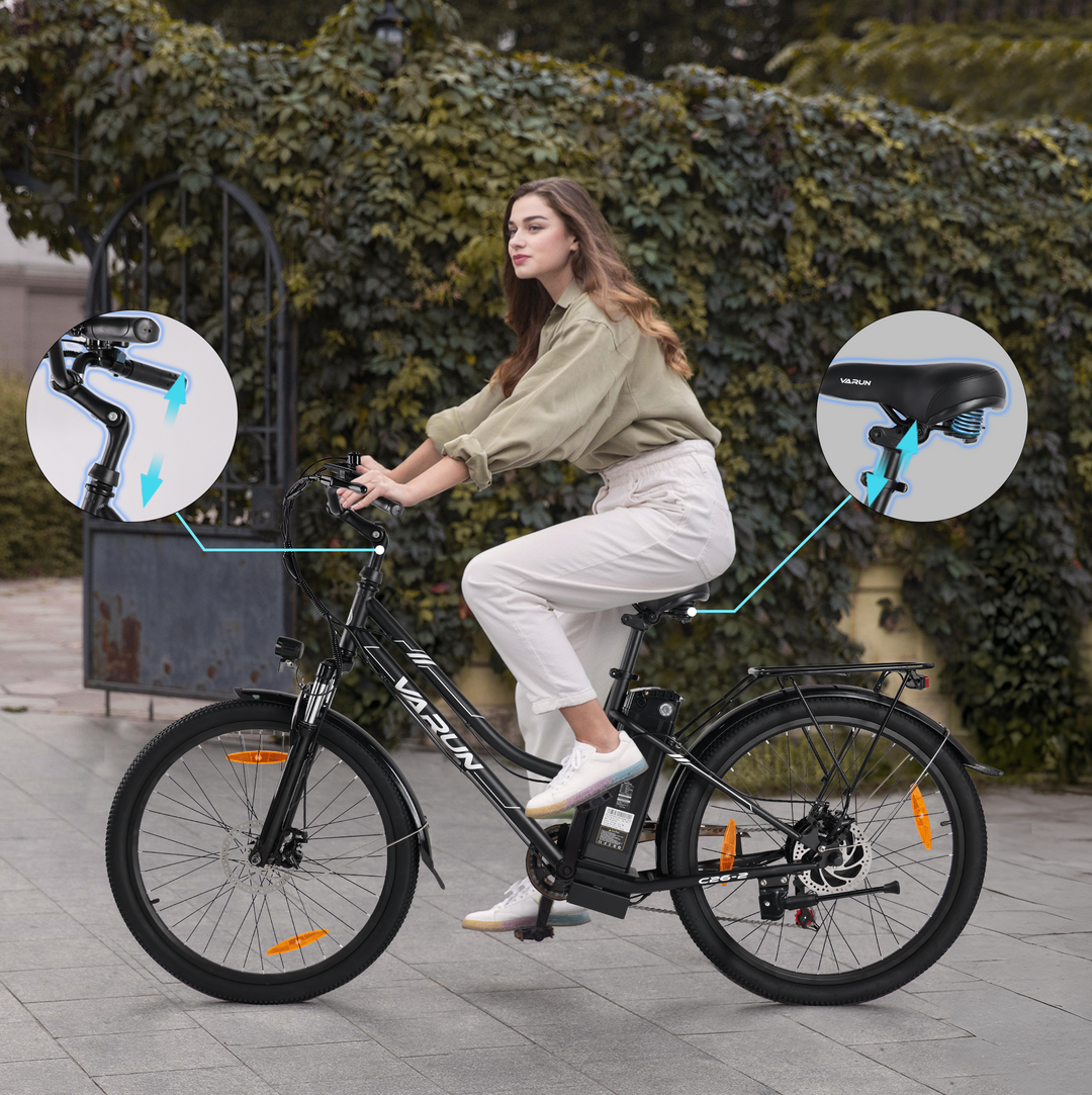 VARUN 26" Urban E-Bike for Men and Women, equipped with 48V 374.4Wh battery, up to 80 km range, 55Nm 250W motor