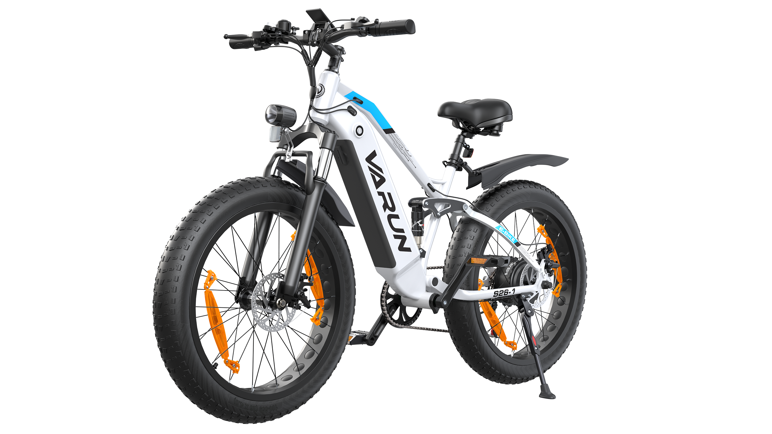 The dual disc brake system featured here delivers exceptional stopping power. Whether you're navigating steep descents or need to make sudden halts in urban riding, these disc brakes ensure precise and reliable braking performance.