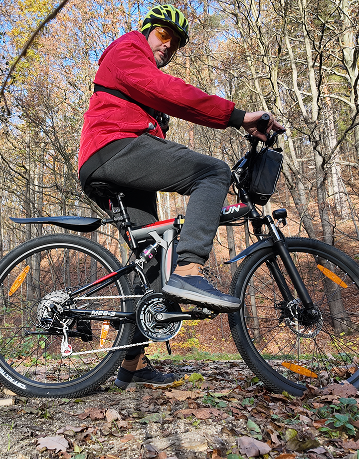 26” Folding E-bike with Full Suspension System—250W brushless motor & replaceable 48V 374.4Wh lithium-ion battery