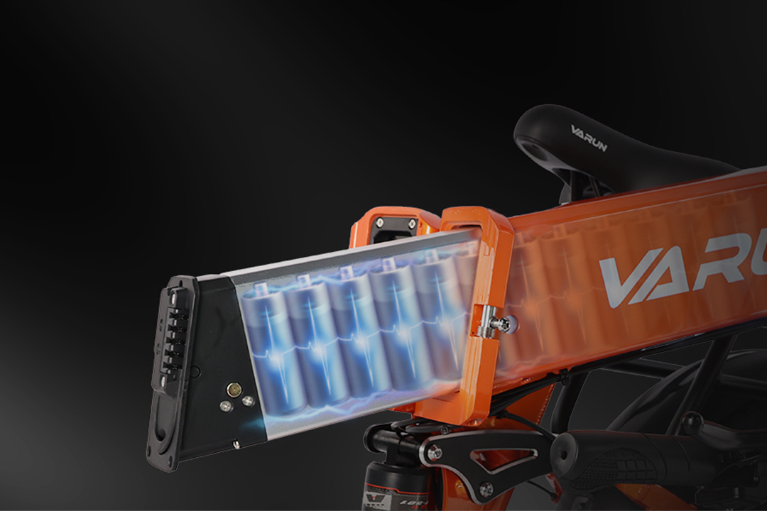 Varun e-bikes feature a removable battery that you can take out and charge at home, or you can charge it directly on the bike.