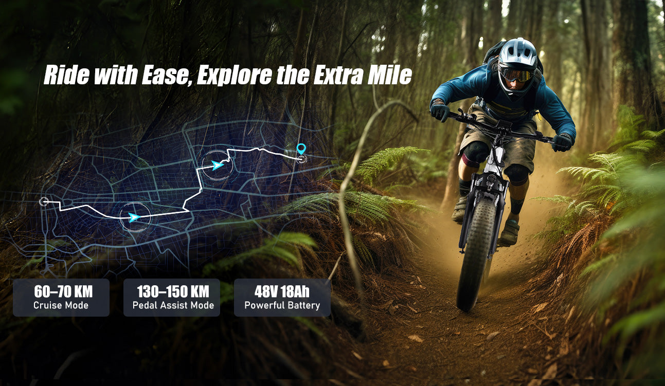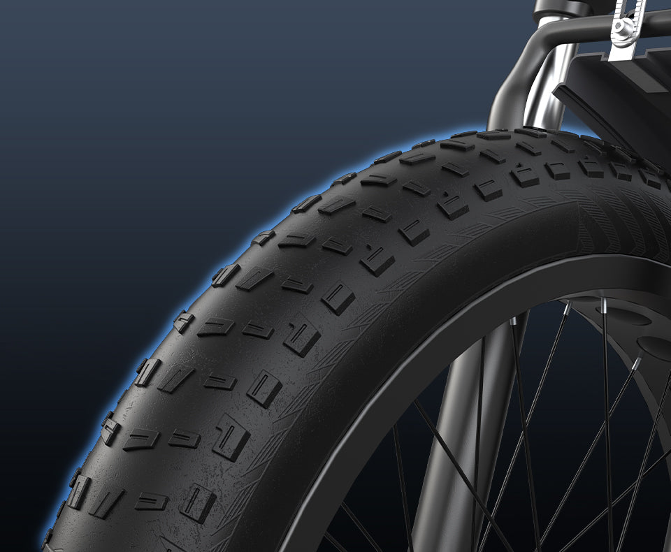 The all-terrain fat tires deliver exceptional grip and outstanding shock absorption. Coupled with their puncture-resistant design, they ensure a smooth and secure ride for your journey—whether you're navigating city streets, riding across sandy beaches, or traversing snowy terrain.