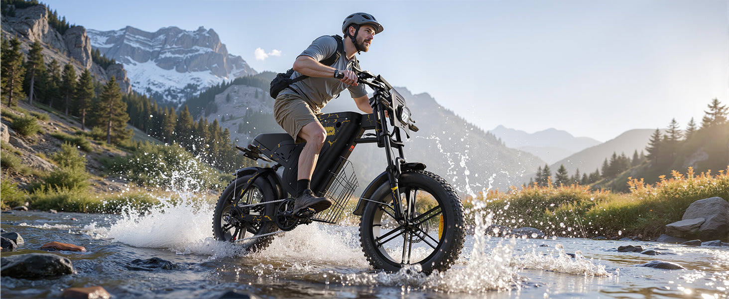 Built to endure, the all-terrain fat tires combine a rugged, wear-resistant construction with a puncture-resistant design. This ensures a smooth and secure ride across demanding surfaces—from abrasive city streets to rough trails—guaranteeing long-lasting performance.